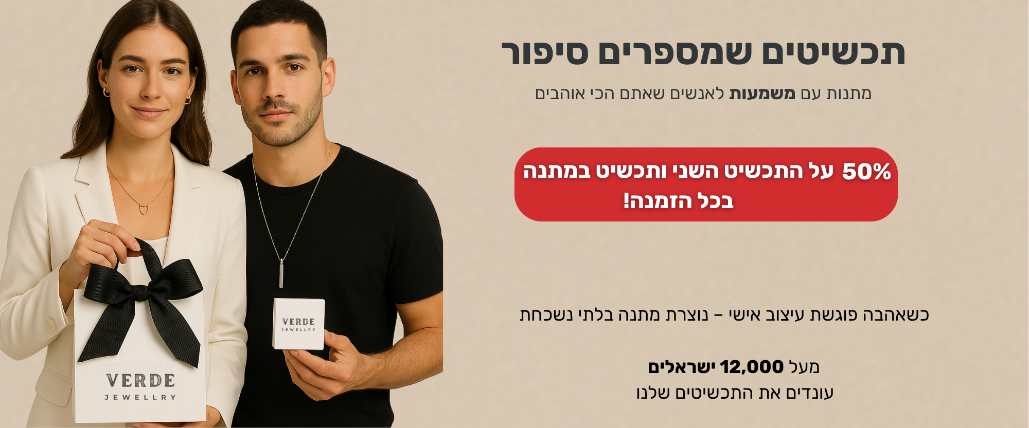משלוח חינם + 50% הנחה על התכשיט השני